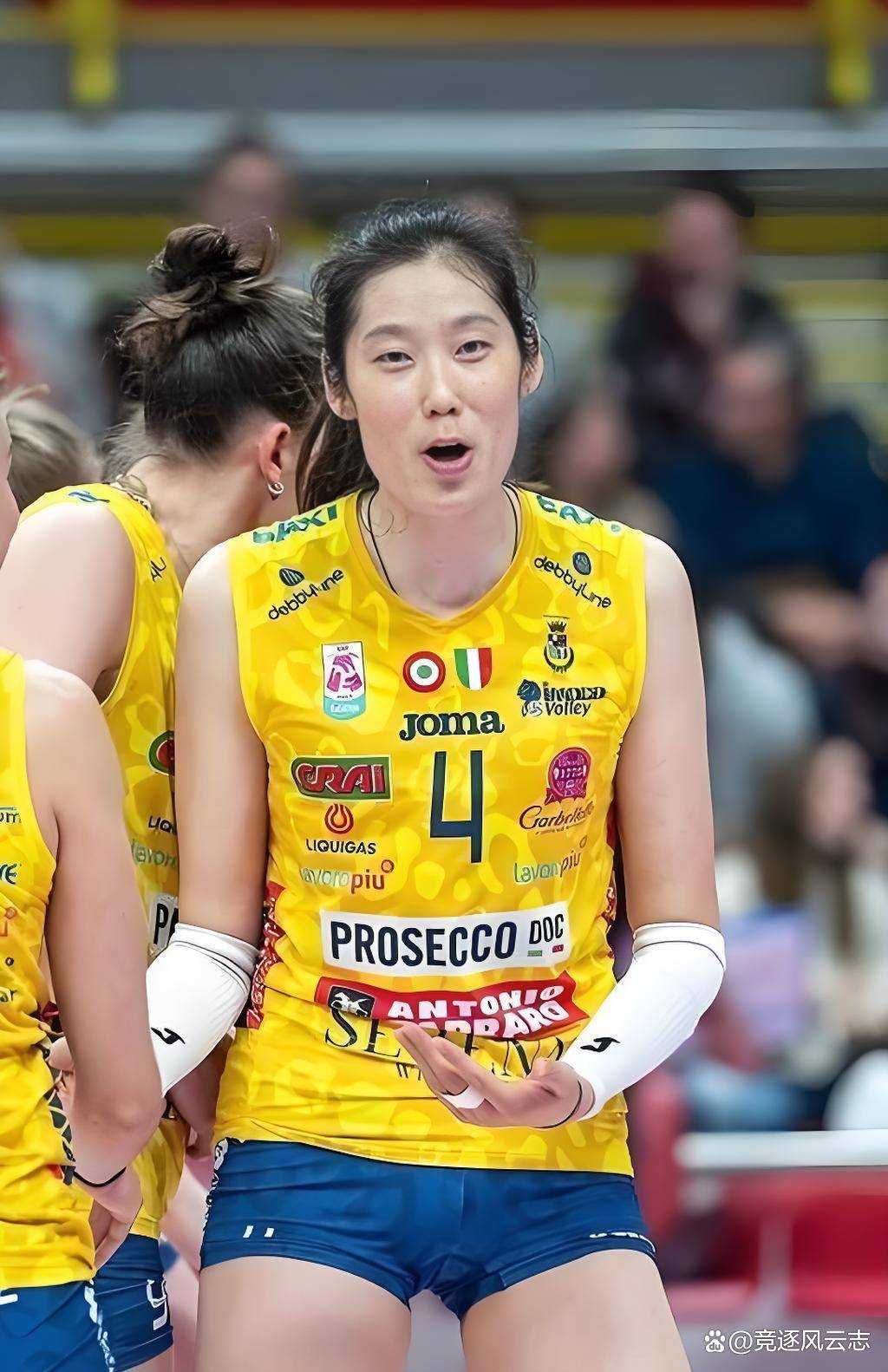 第三局一开始,场上阵容大变样。球队的头号得分手、瑞典接应哈克坐回了替补席,主力二传沃沃什也被换下。然而,站在主攻位置上的,依然是身披4号球衣的朱婷。场上形成了一个极其别扭的组合:核心攻手朱婷,带着一套以替补为主的阵容,去对抗背水一战、全主力拼杀的土耳其泽仁体育队。比赛的势头瞬间扭转,科内利亚诺的进攻组织变得生涩,第三局很快以19-25落败。
